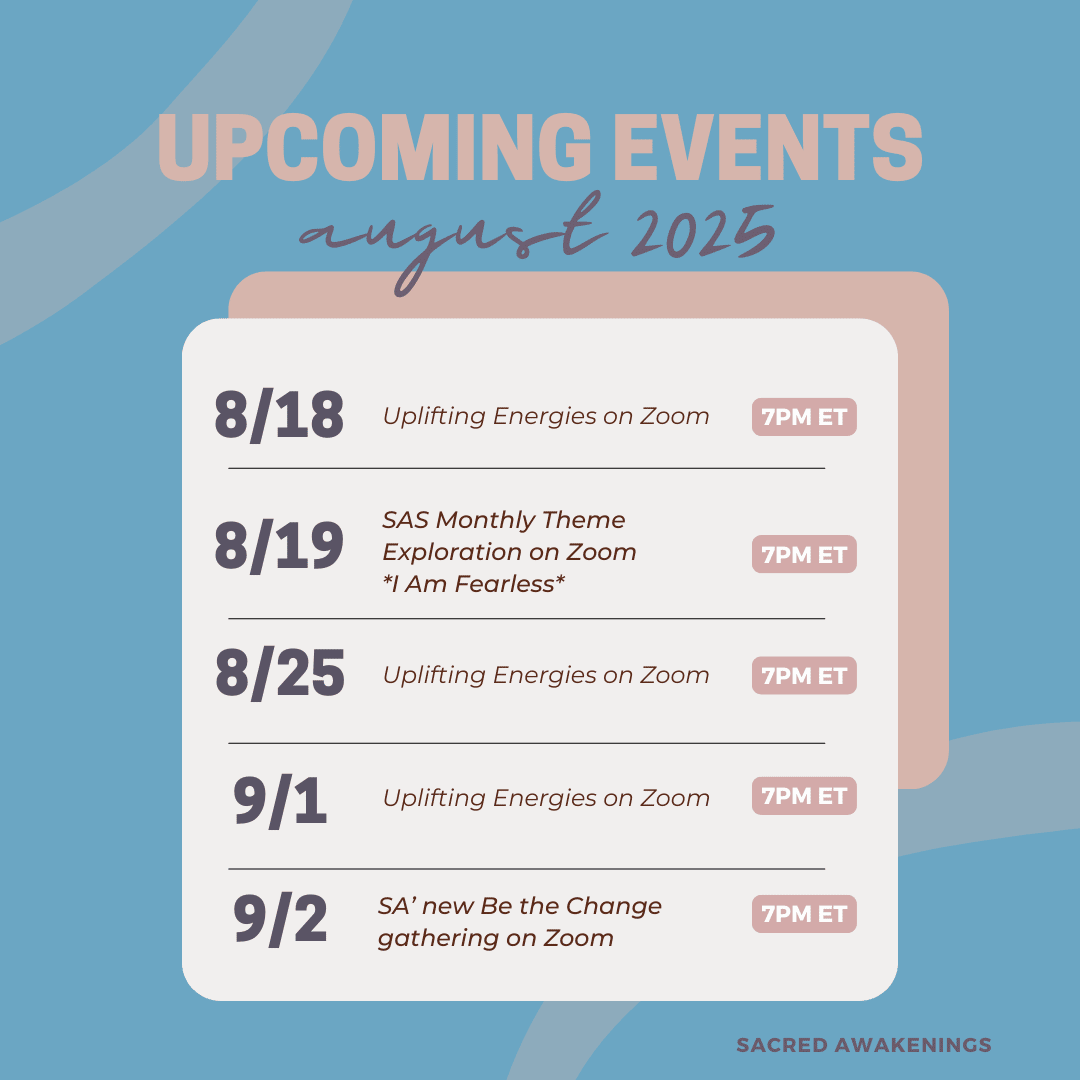 SA's New Offering ~ Be the Change Gathering on the first Tuesday each month @7pm ET